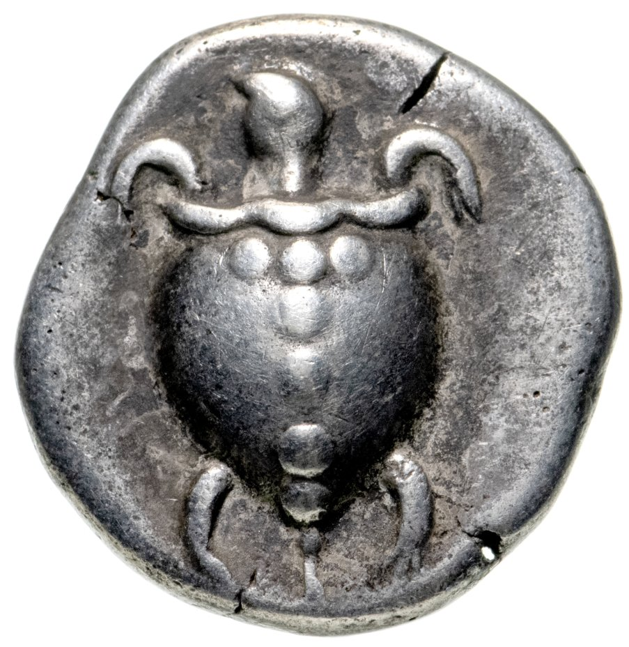 - Эгина: серебряная монета с изображением черепахи (около 685 г. до н. э.);